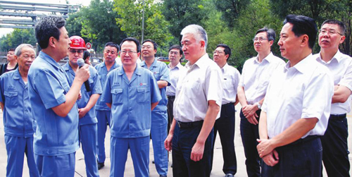 8月15日,科学技术部党组书记、常务副部长王志刚一行,在省长李小鹏、副省长张复明、省政府秘书长廉毅敏等陪同下,就企业技术创新工作到太钢调研。太钢董事长李晓波,集团公司总经理高祥明,不锈钢股份公司总经理张志方、副总经理高建兵,集团规划委员会副主任、中国工程院院士王一德参加调研。