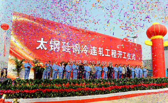 10月27日上午,位于公司热连轧厂房西侧的工地上彩旗招展,礼炮齐鸣,鼓乐喧天。公司董事长李晓波宣布:“太钢硅钢冷连轧技术改造工程开工!”