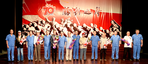 图为公司领导同抗战老同志和老战士代表合影。 王旭宏 刘君 摄
