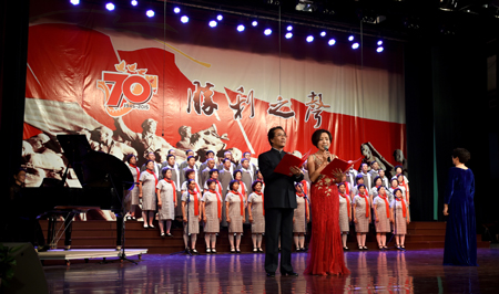图为公司抗战胜利70周年《胜利之声》音乐会演出现场。 王旭宏 刘君 摄