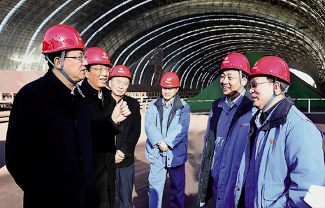 图为贺天才在太钢原料场环保大棚调研。 白治斌 摄