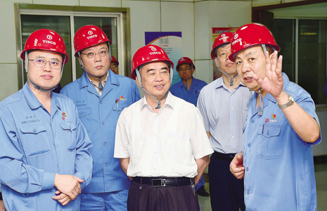 7月4日,山西省委常委、常务副省长林武到太钢,就太原市转型项目建设工作情况进行调研。山西省政府副秘书长翟振兴,山西省发改委副主任姚少峰,太原市委常委、常务副市长王立刚等一同调研。太钢集团党委书记、董事长、总经理高祥明,太钢集团党委常委、副总经理柴志勇,太钢集团董事会规划委员会副主任周宜洲及公司相关副总级领导参加。
