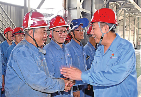 在太钢炼铁厂6号高炉炉前,太钢集团党委书记、董事长高祥明与在场职工一一握手,感谢大家的辛苦付出。他说,现在正值三伏天,是夏季最热的时候,大家奋战在生产一线,战高温、斗酷暑,展现了“特别能吃苦,特别能战斗”的作风。在这样的高温环境下,公司心系每一名职工的安全和健康,一定会千方百计创造条件为大家的安全生产作业保驾护航,同时也希望每一名职工从自身做起,在做好个人防护的同时,注意适当休息和加强营养,保持充沛体力,以饱满的精神状态投入到工作当中,全力以赴保障安全生产和绿色生产,为太钢高质量发展再立新功。